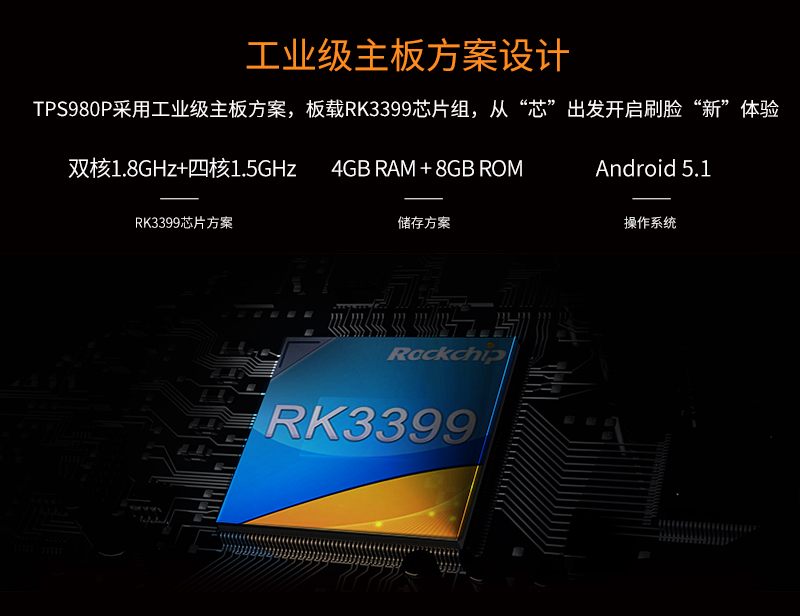 自助创新研发出性价比更高的结构光人脸识别终端。TPS980P结构光人脸识别终端采用升级版工业级芯片RK3399方
